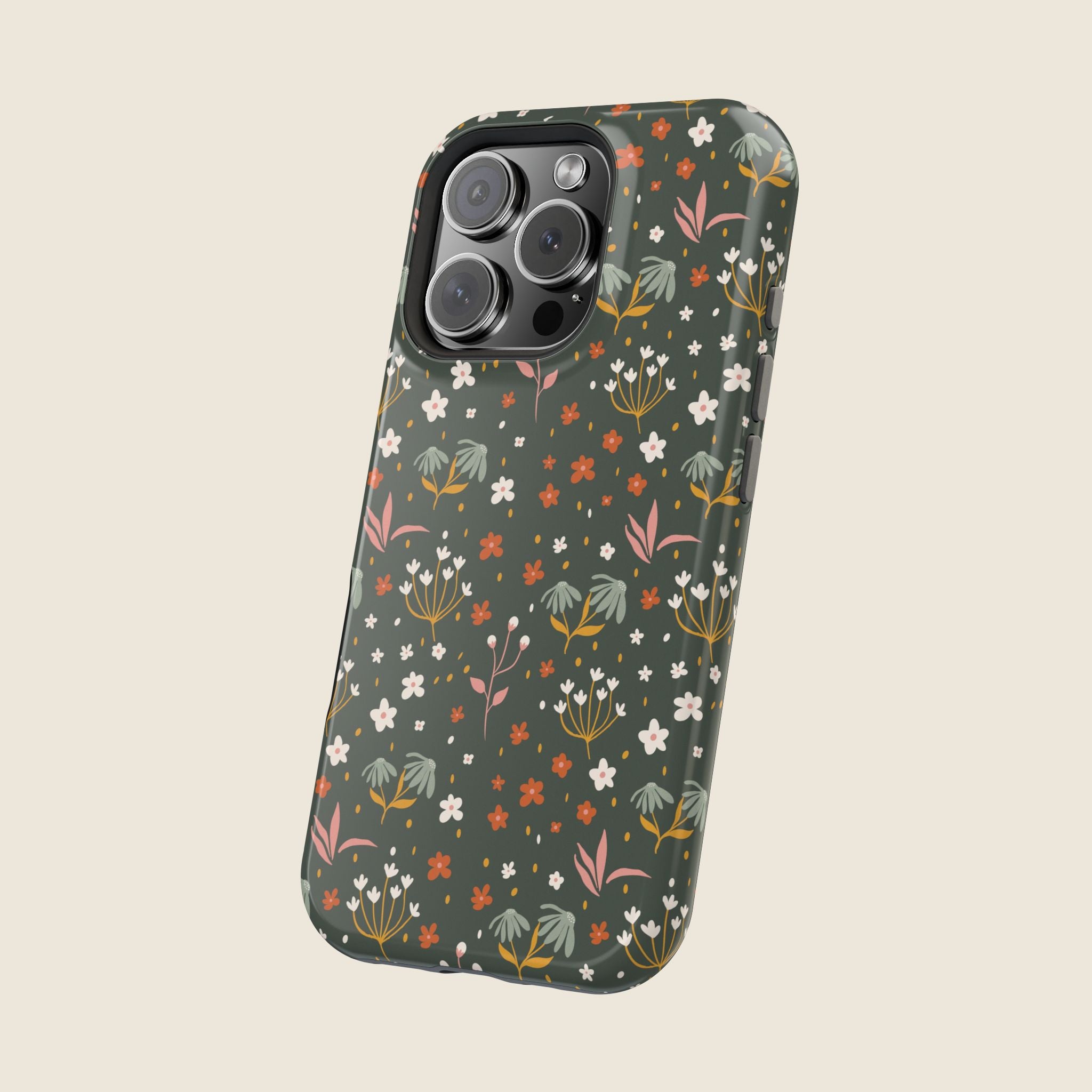 Forest Green Wildflower iPhone Case – Autumn Floral MagSafe Design