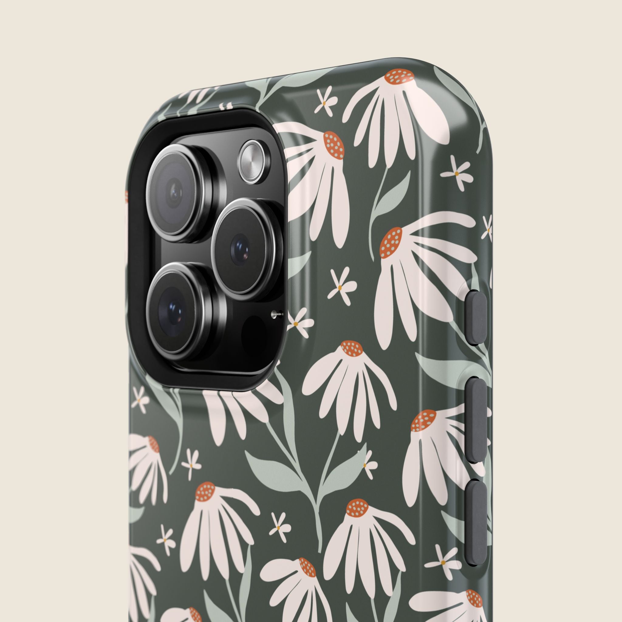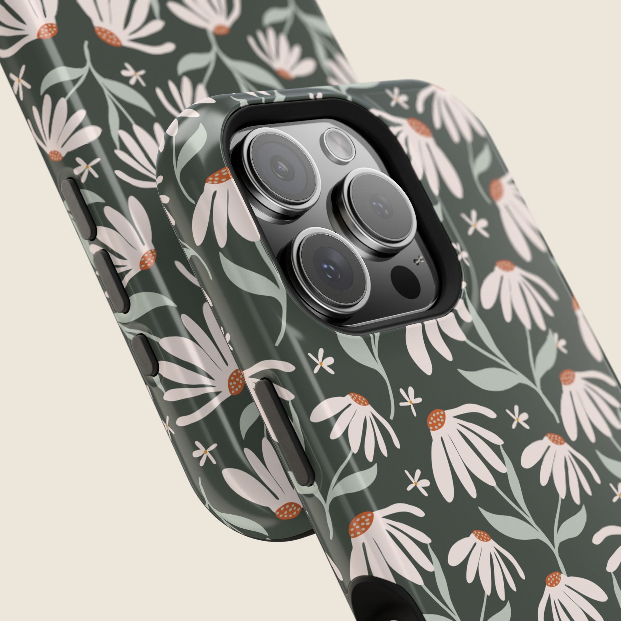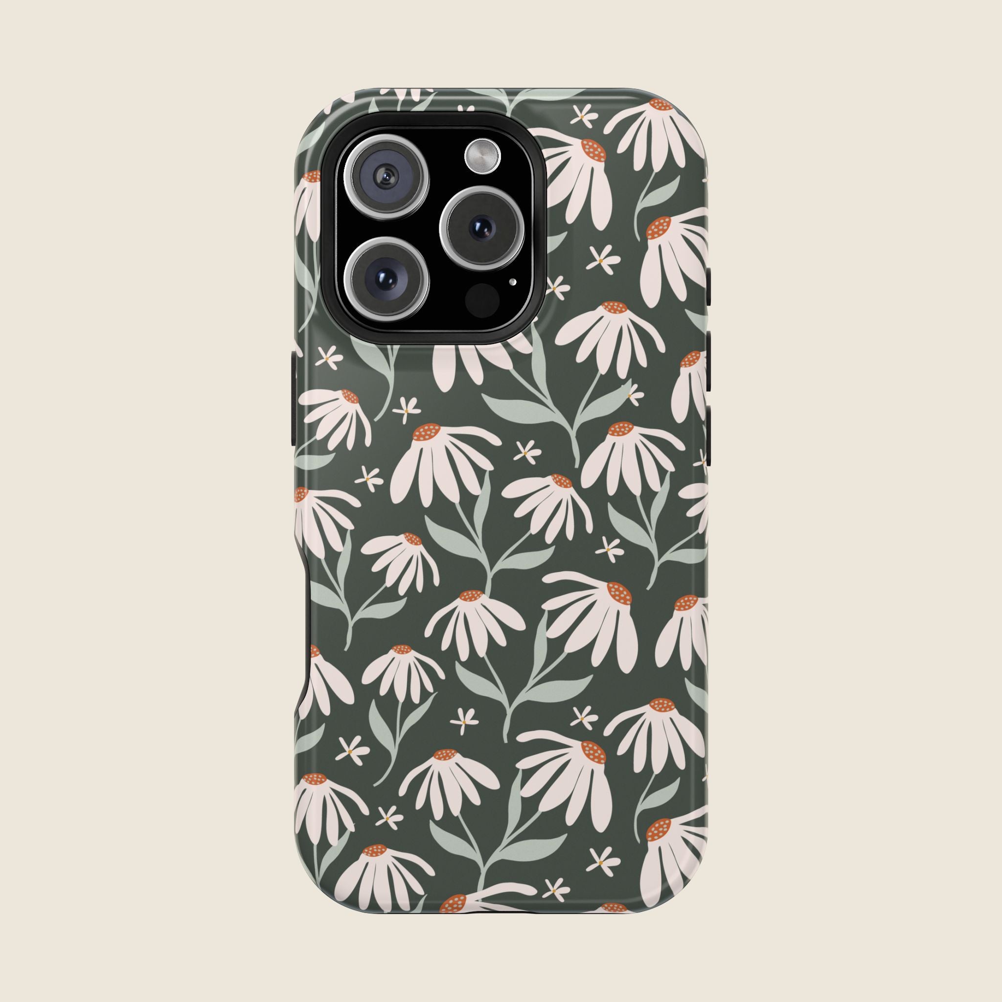 Dark Green Daisy Floral iPhone Case – MagSafe Compatible Protective Cover