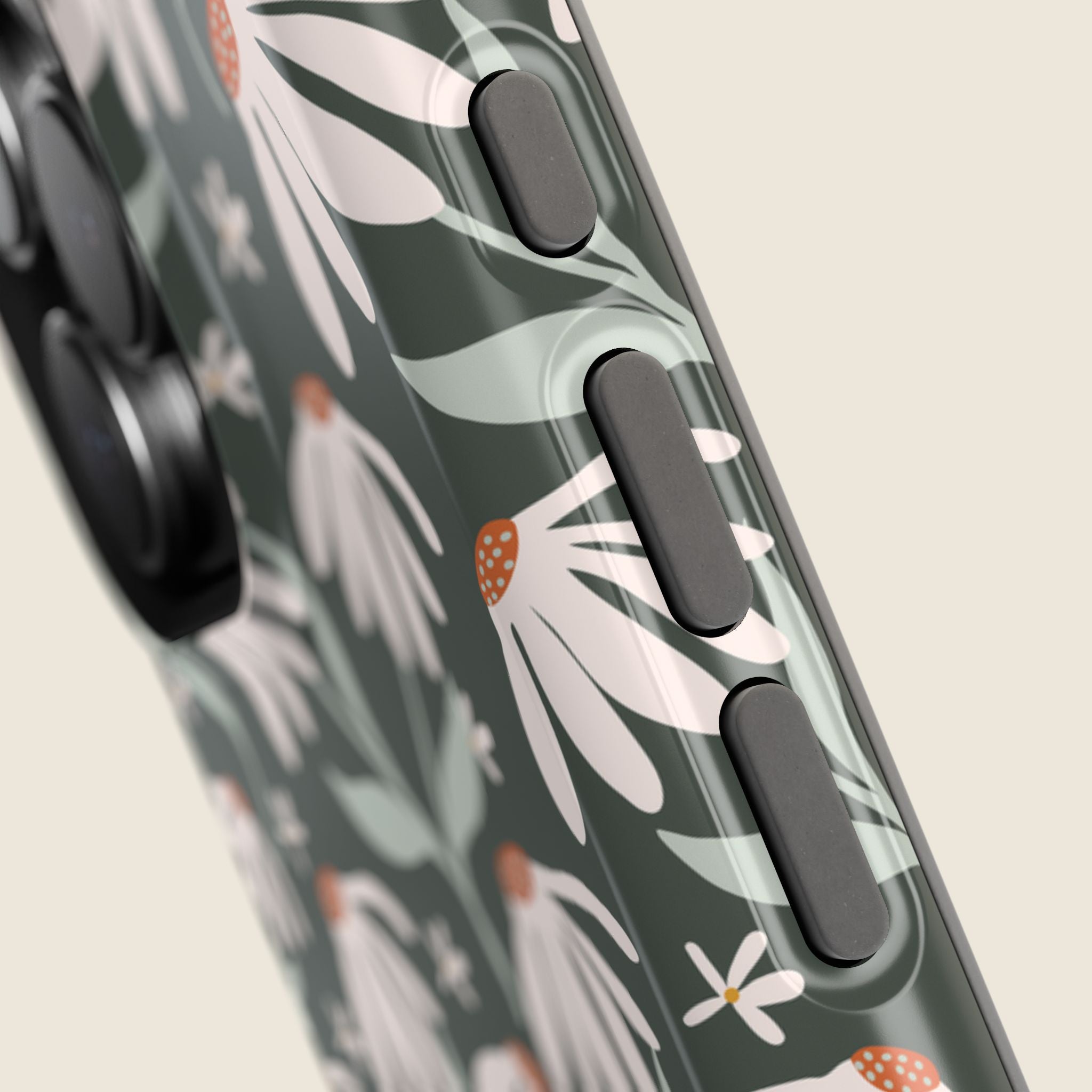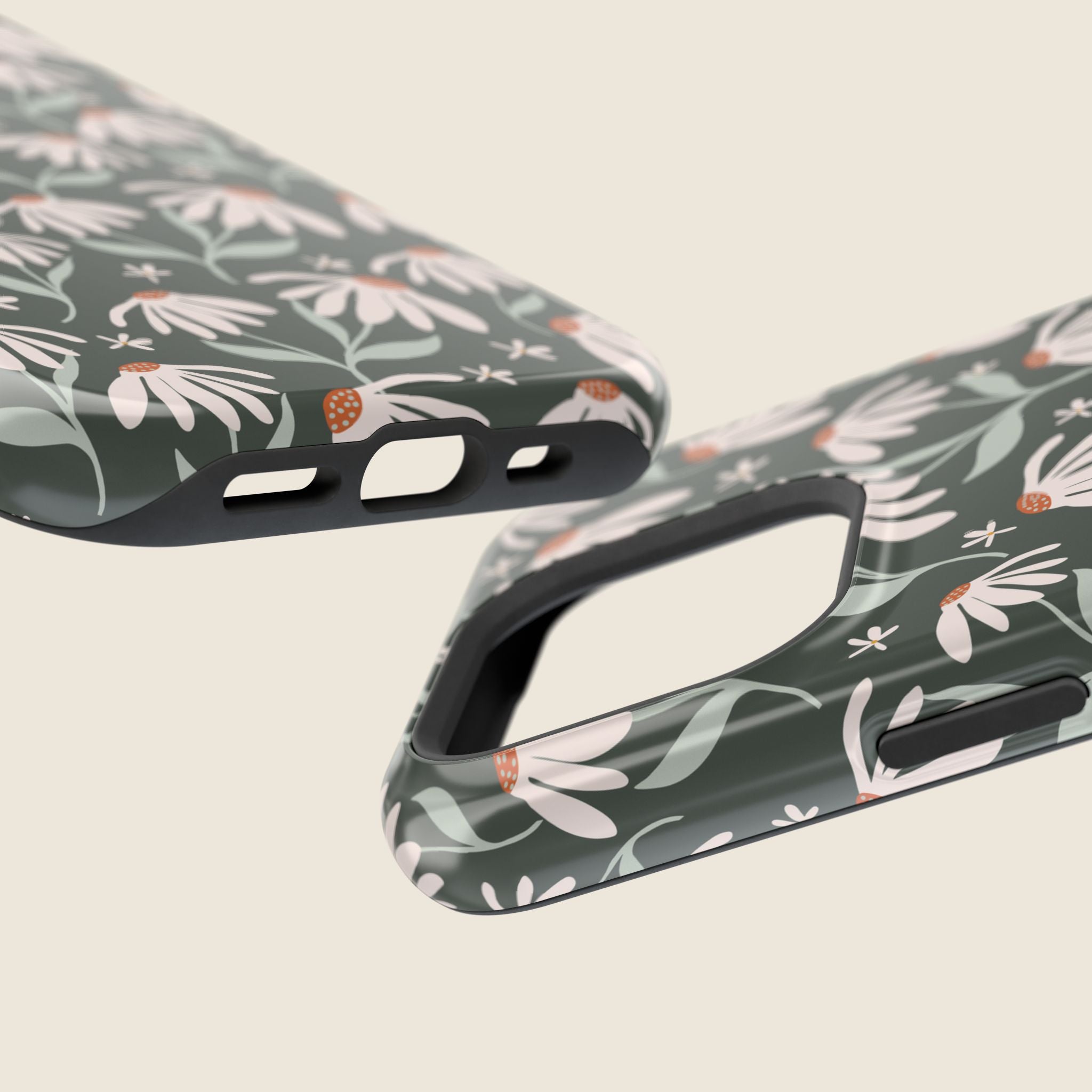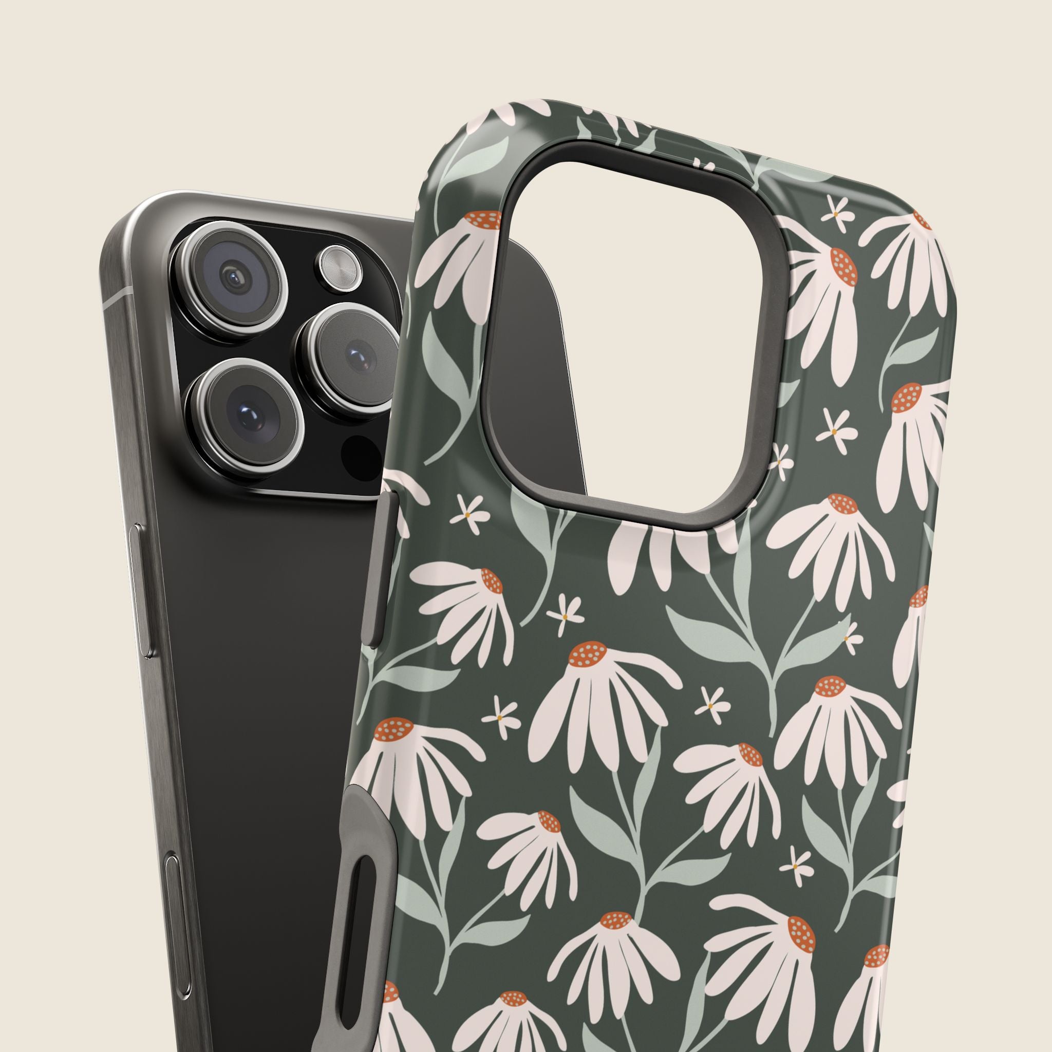 Dark Green Daisy Floral iPhone Case – MagSafe Compatible Protective Cover