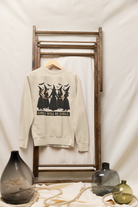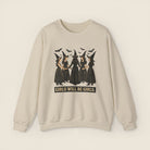 Celebrate spooky season in style with the Girls Will Be Girls Witch Sweatshirt. Featuring a vintage-inspired illustration of five witches holding hands under a sky of flying bats, this sweatshirt blends timeless Halloween charm with a bold feminist twist. The “Girls Will Be Girls” slogan adds personality and makes it a standout piece for your fall wardrobe. Made with a soft and durable cotton-polyester blend, this unisex crewneck provides both comfort and structure. Ribbed knit collar, cuffs, and hem ensure lasting shape, while double-needle stitching adds extra durability. Whether you’re headed to a Halloween gathering or simply cozying up on a fall evening, this sweatshirt makes a stylish and statement-making choice.