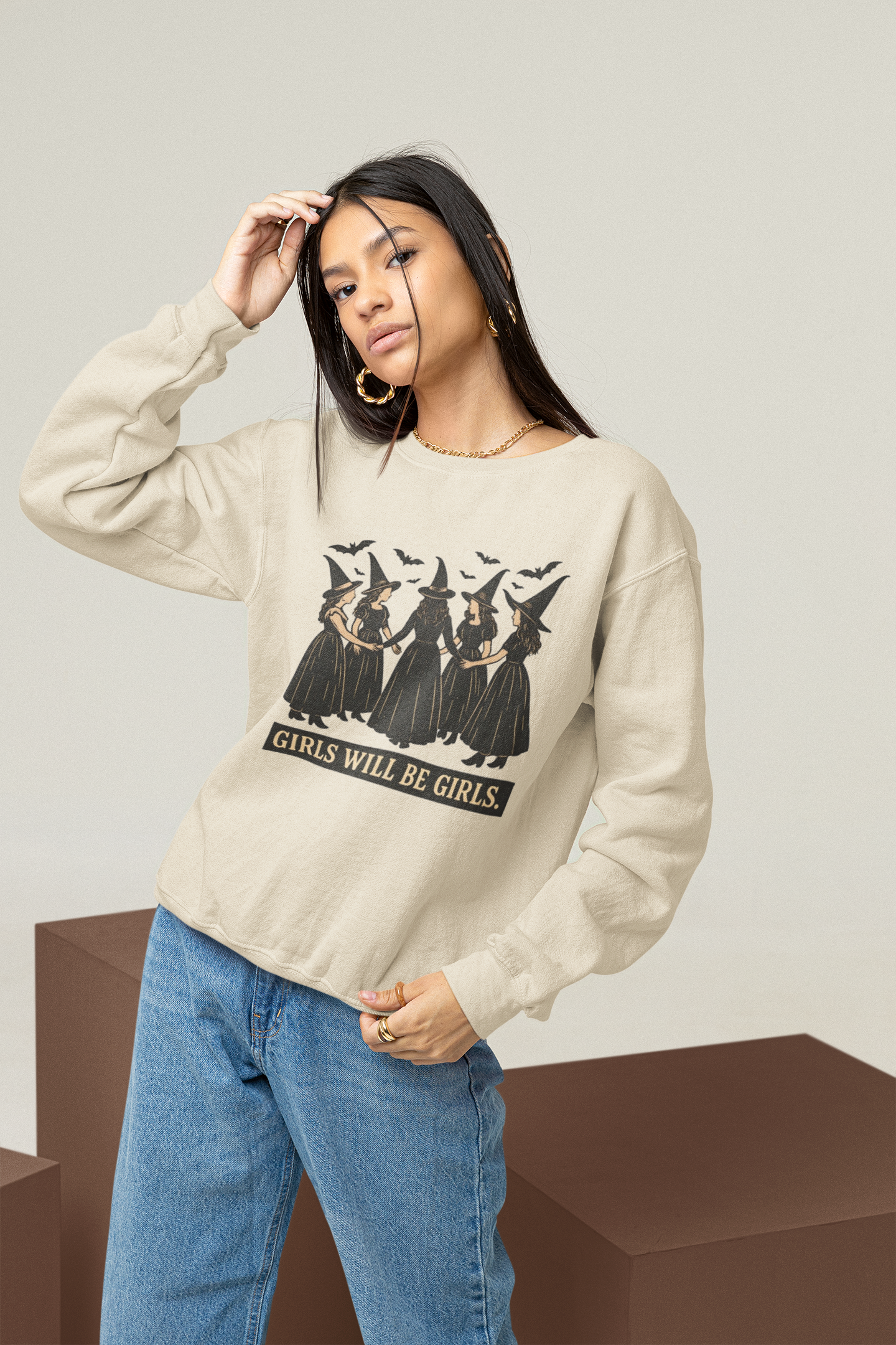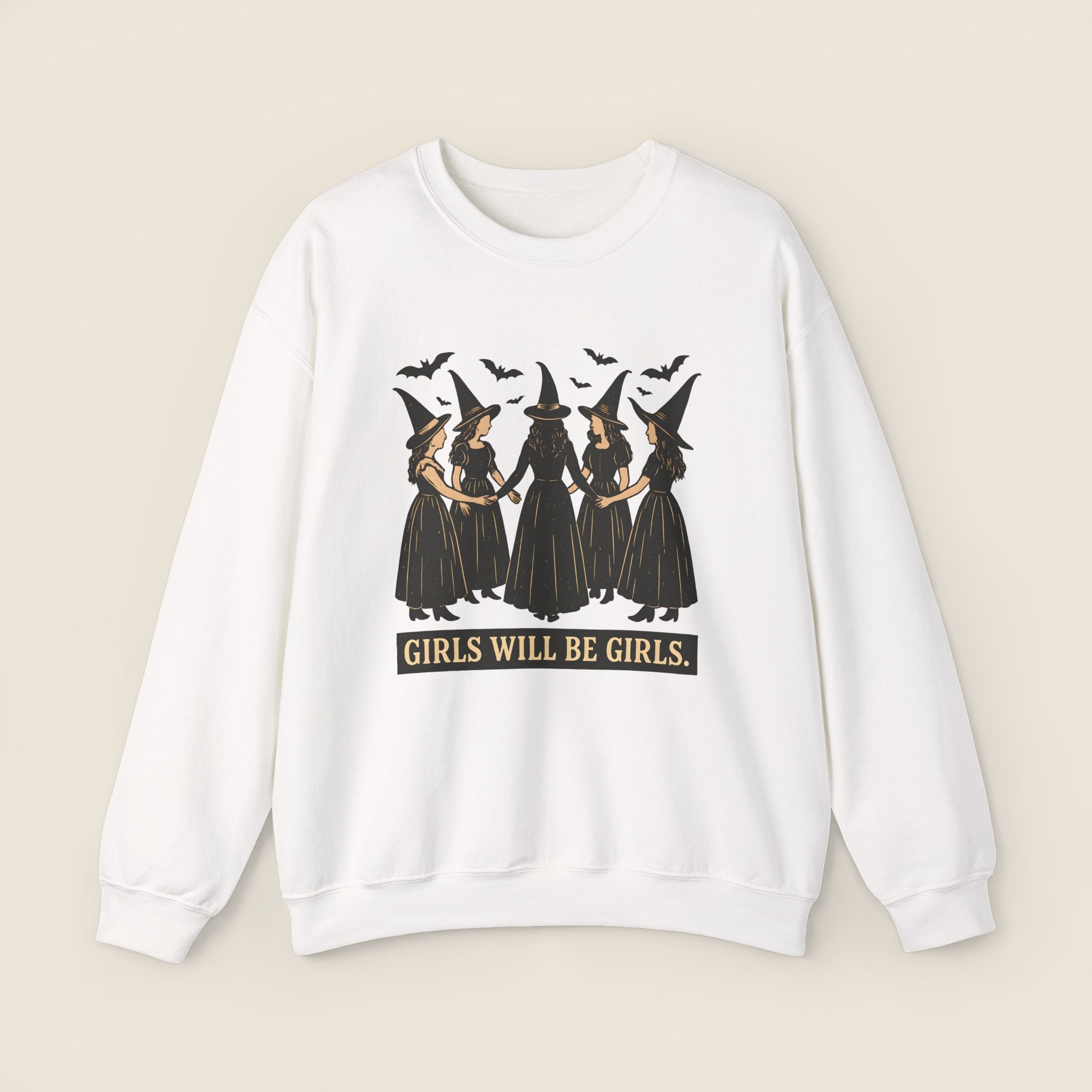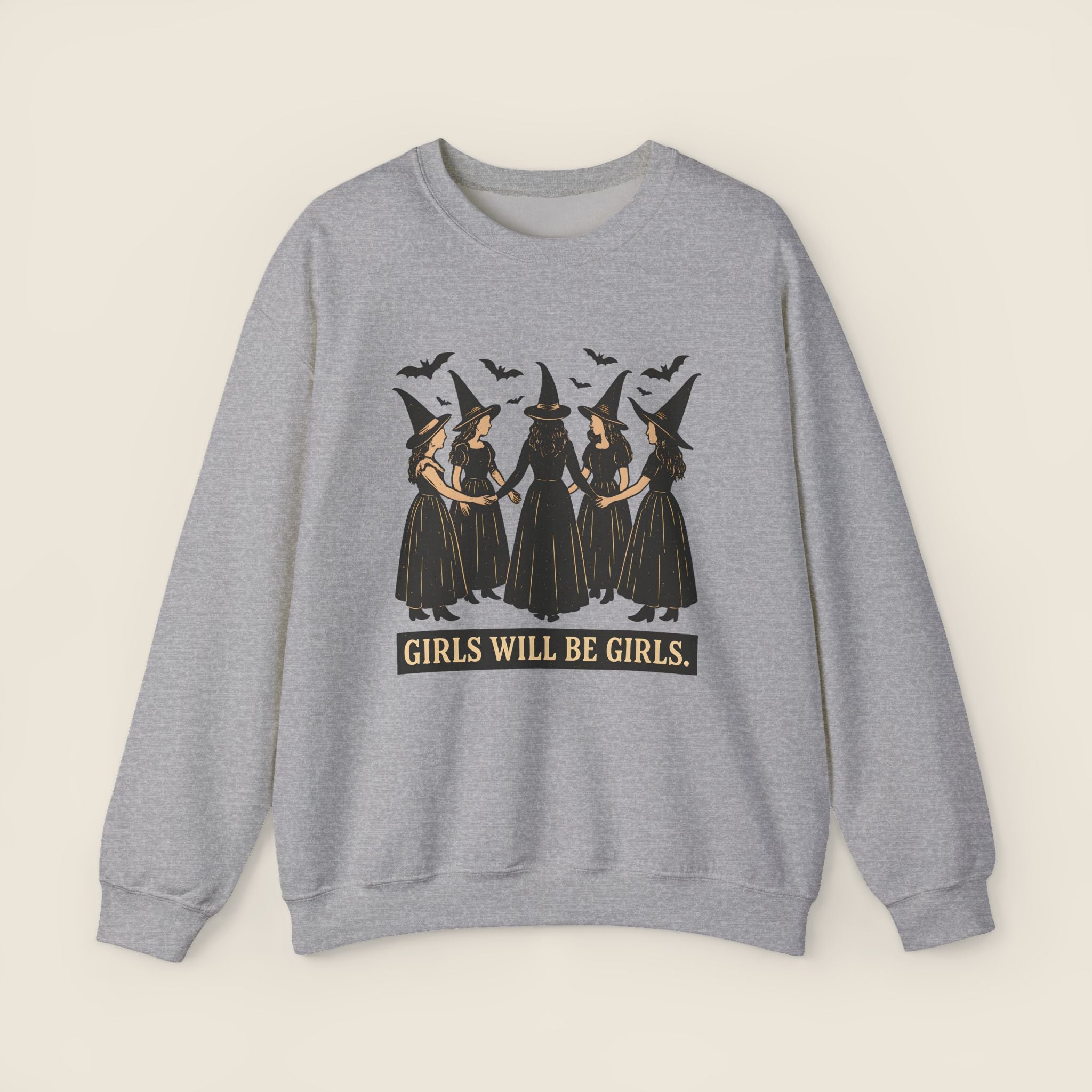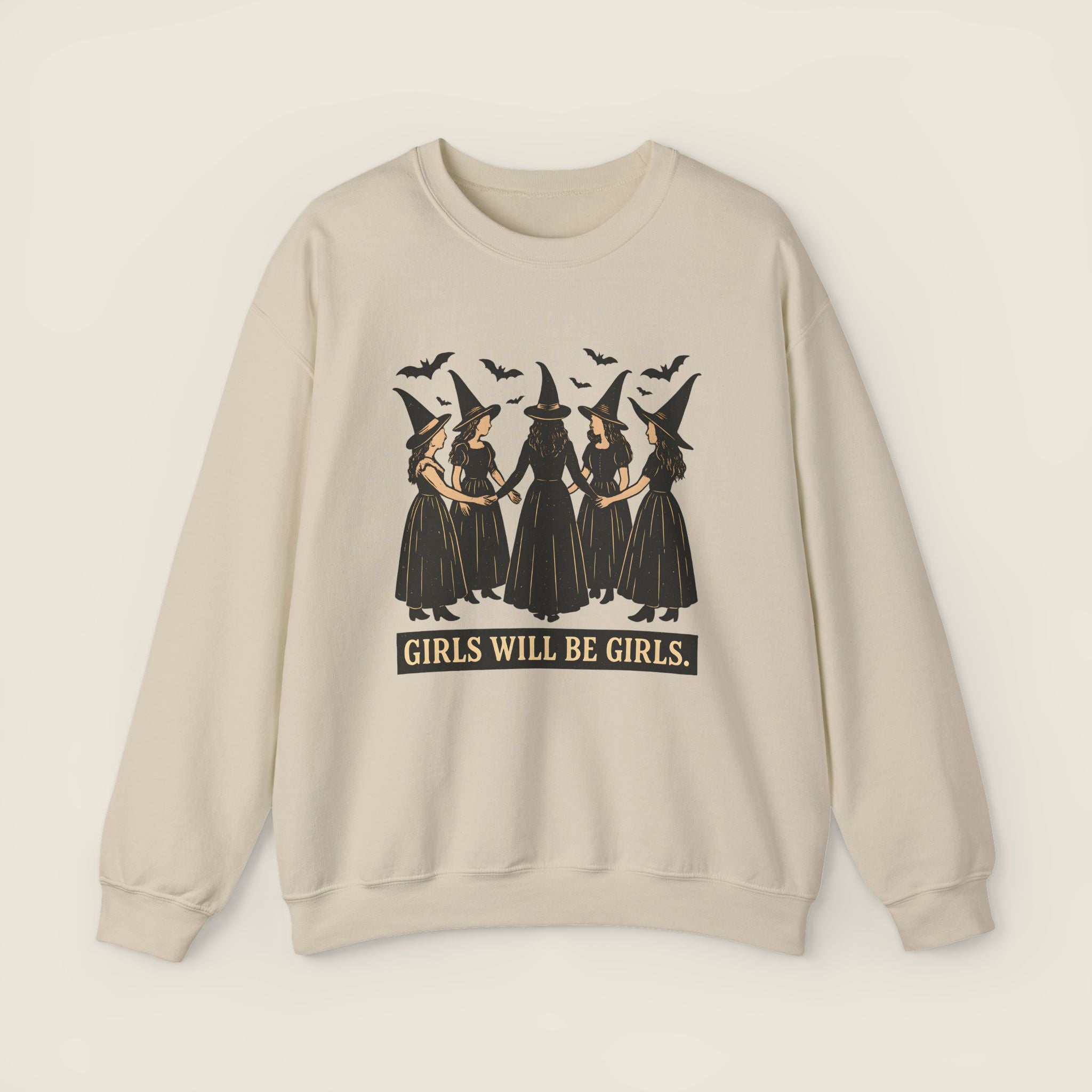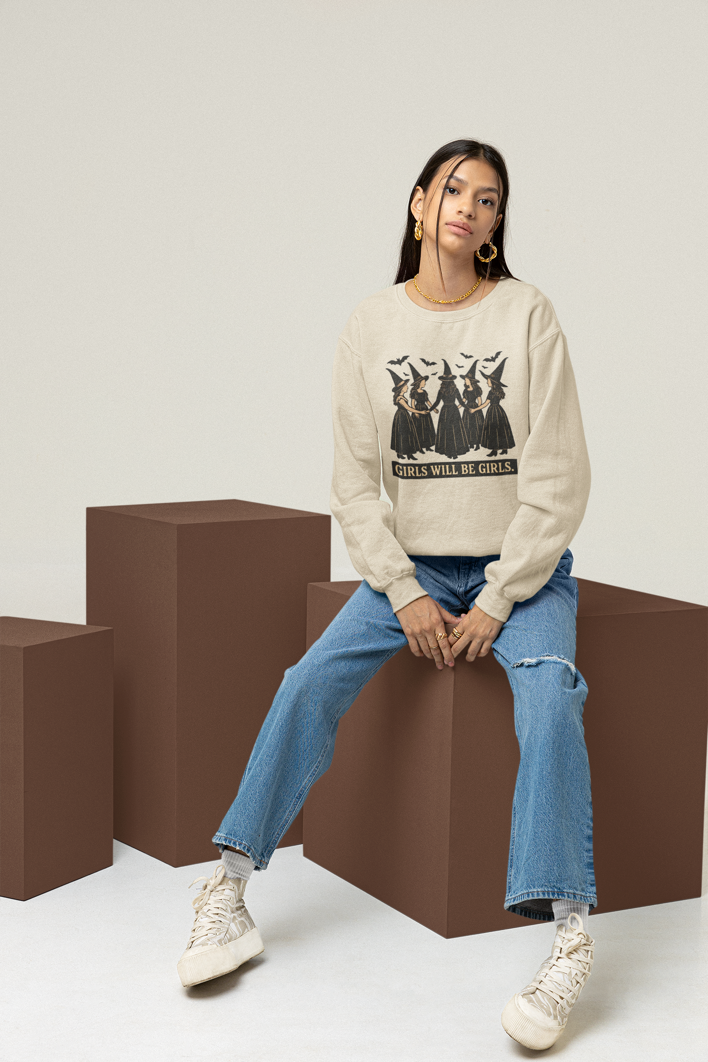 Girls Will Be Girls Witch Sweatshirt – Vintage Halloween Coven Graphic
