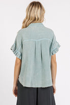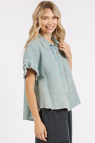 Mineral Washed Cotton Gauze Button Down Shirt with Ruffle Sleeves - Casual Boho Chic Top