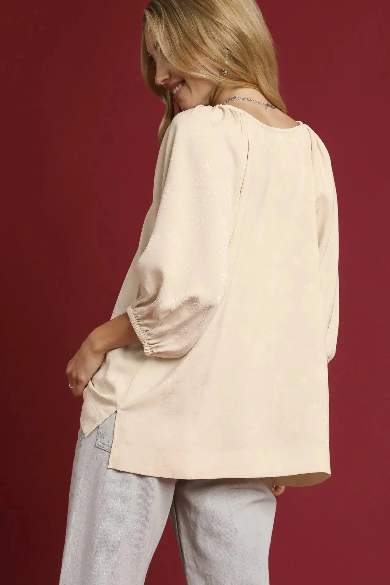 Champagne Oversized Balloon Sleeve 3/4 Blouse