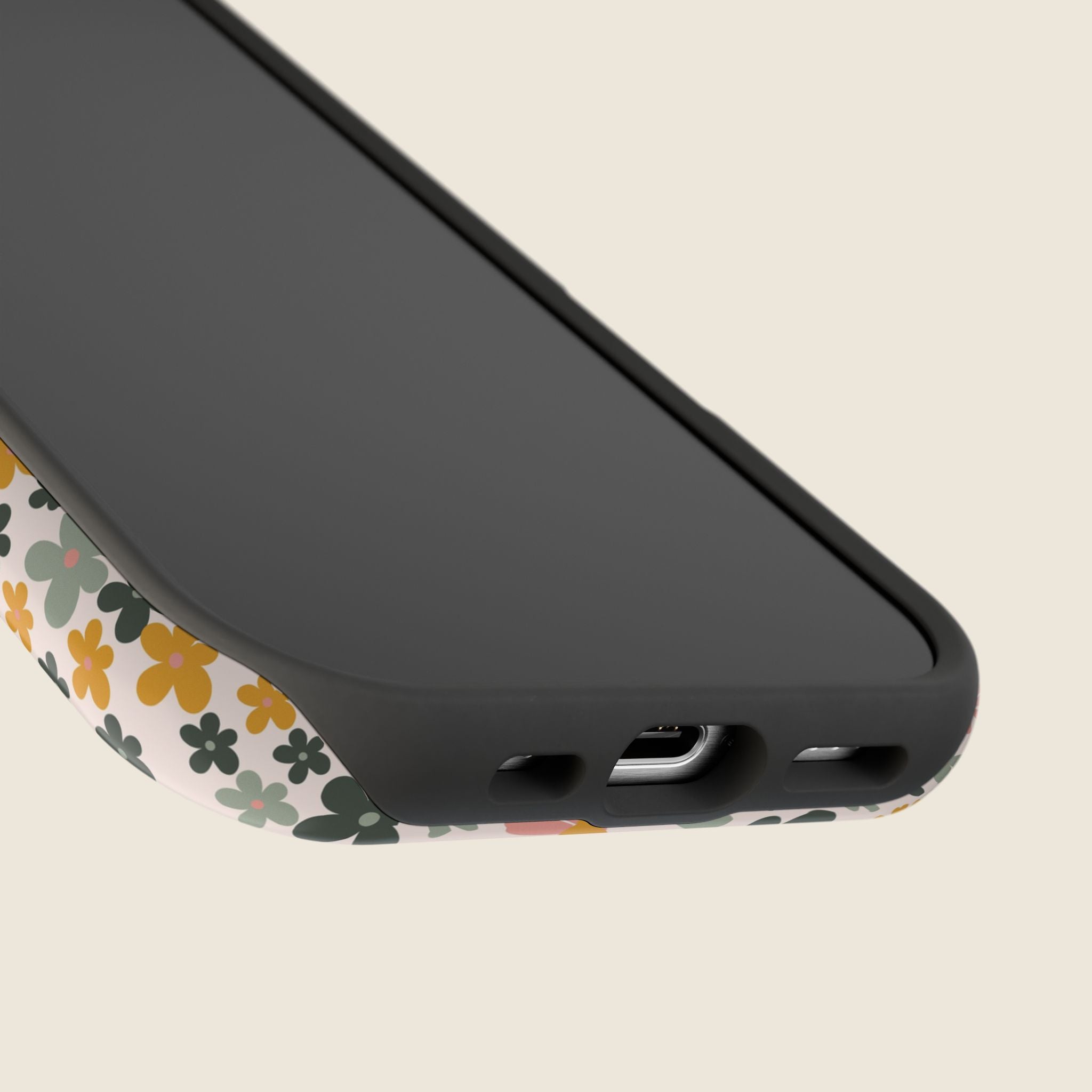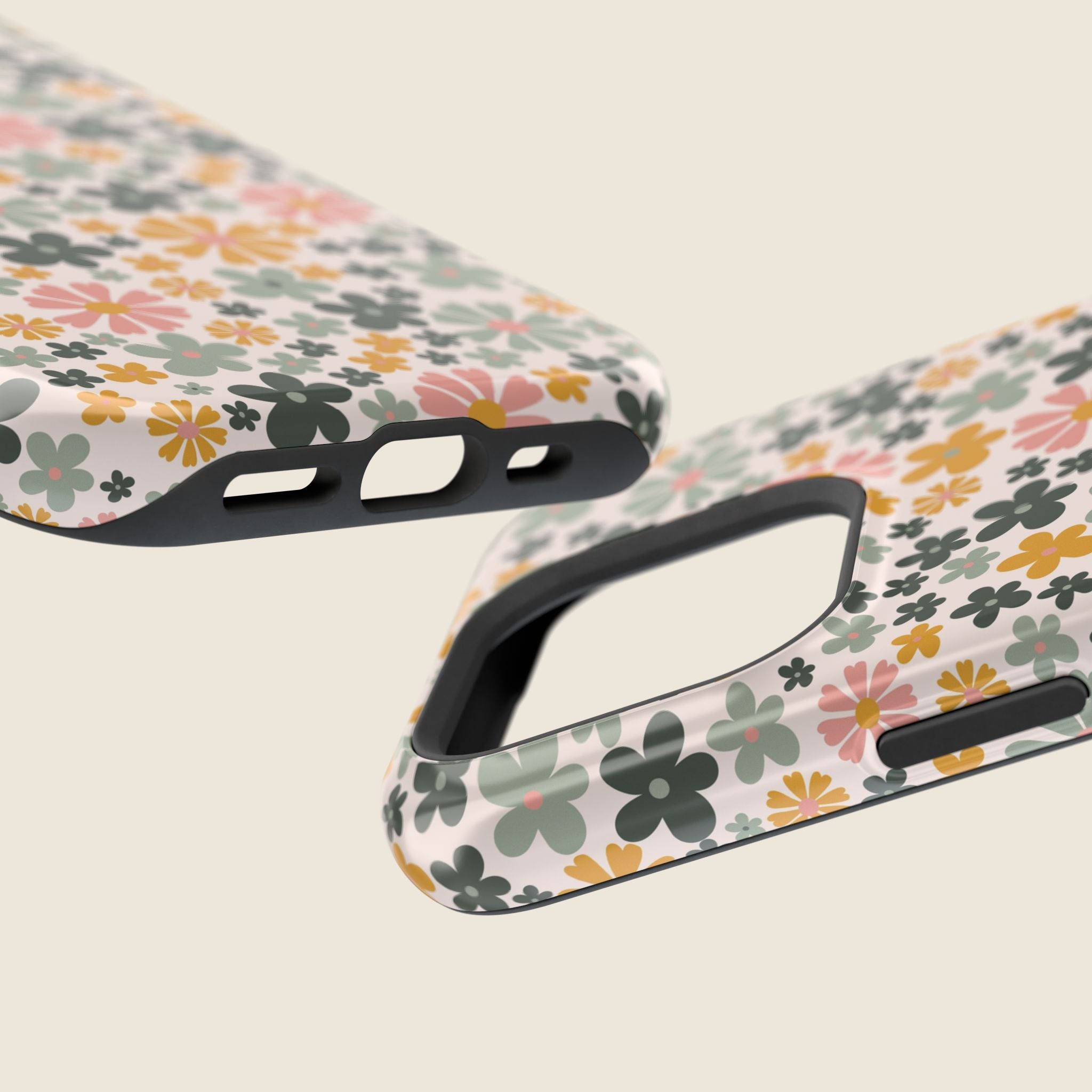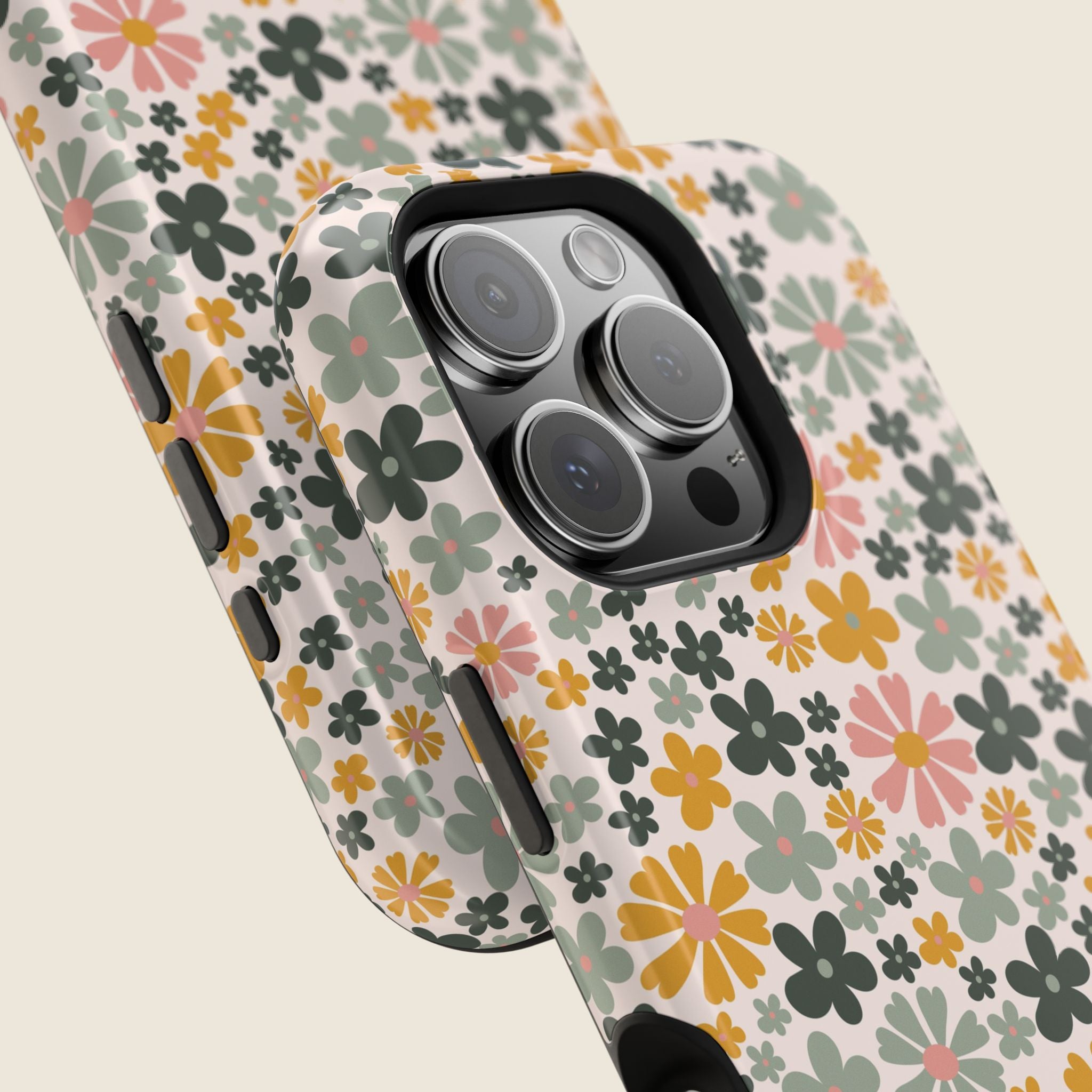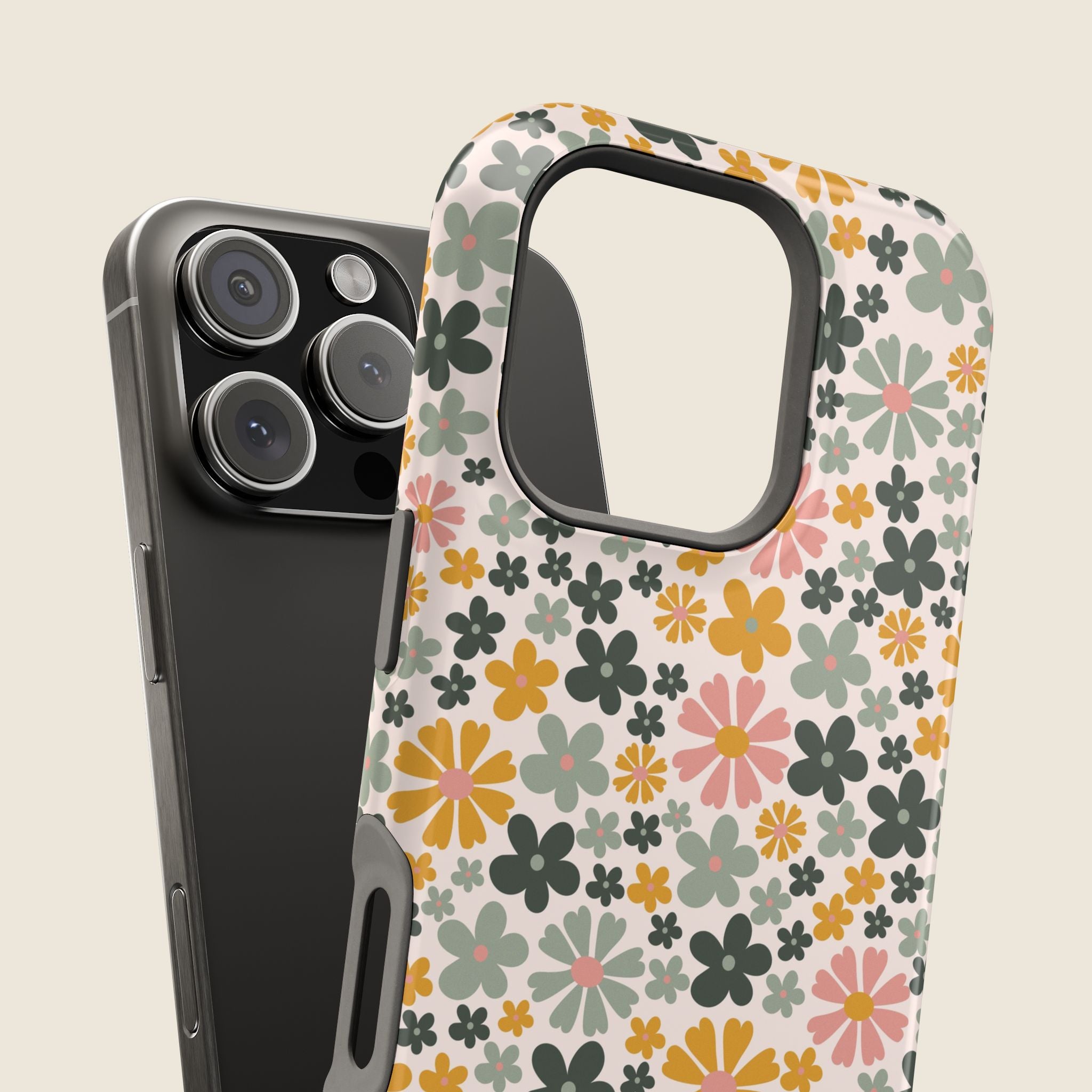 Channel vintage vibes with this retro multicolor floral iPhone case, designed for both style and durability. Featuring a playful 70s-inspired pattern of daisies and wildflowers in mustard yellow, soft pink, sage green, and forest green on a cream background, this case turns your phone into a nostalgic statement piece. The bold full-wrap print pairs perfectly with your favorite boho outfits, while the impact-resistant dual-layer design keeps your device protected. With MagSafe® compatibility and a choice of matte or glossy finish, it’s the ultimate fusion of fun and function.